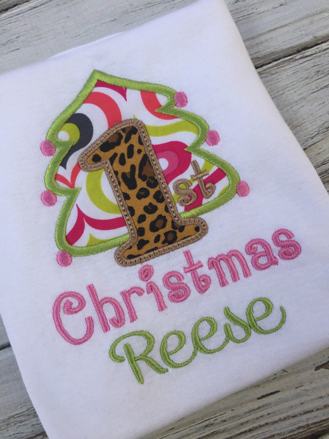 This is a custom made My 1st Christmas onesie! This design shows girls colors, but it can also be made in a boys version!