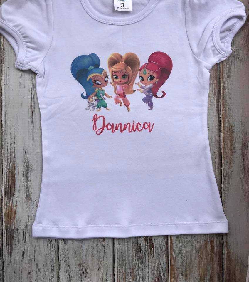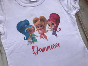 This listing is for a custom Shimmer and Shine with their best friend shirt or onesie. Name can be added or left off.