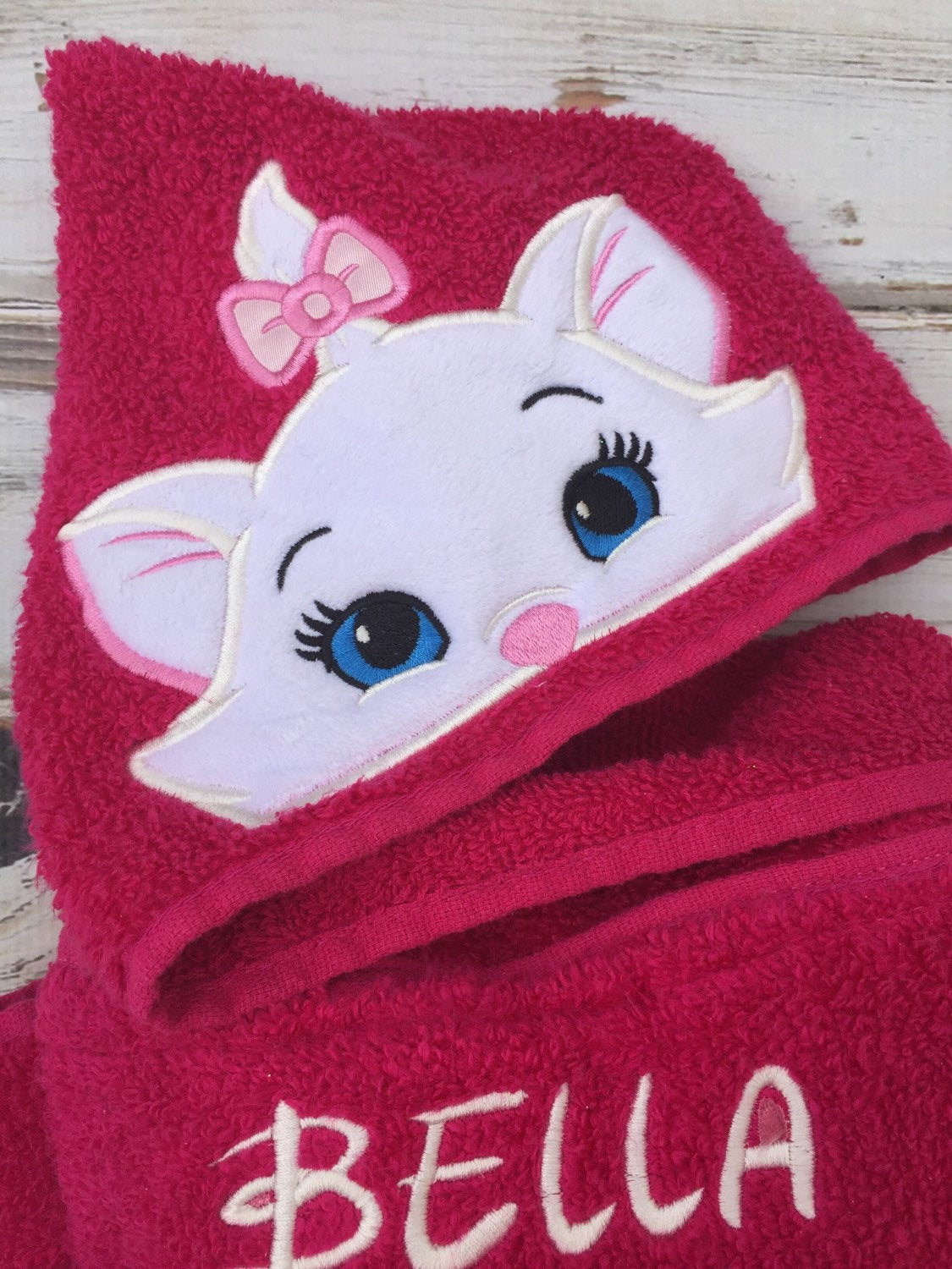 This listing is for a custom Kitty Marie hooded towel. Price includes child's name on the back of the towel.