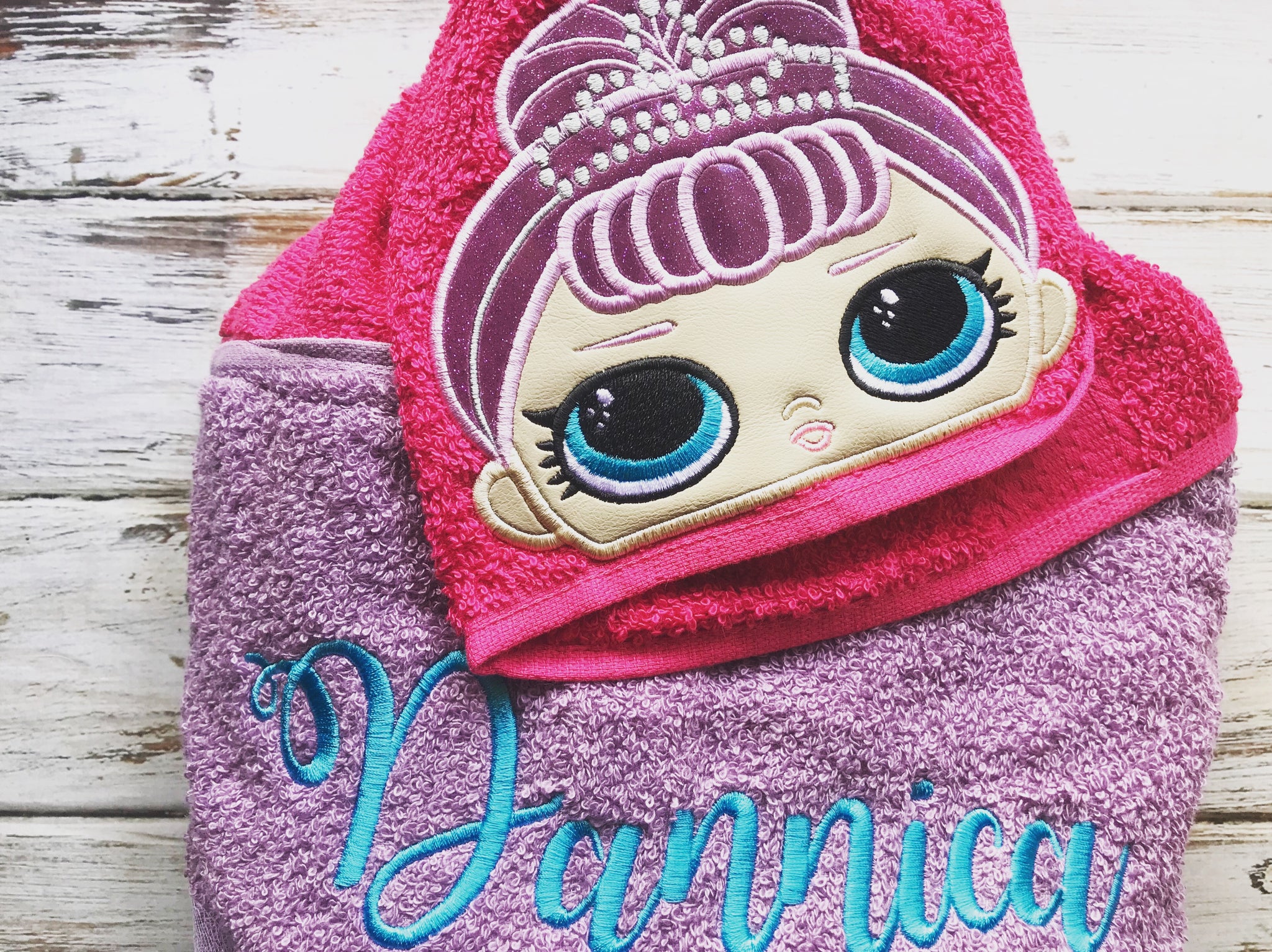 This listing is for a custom LOL Doll hooded towel. Price includes child's name on the back of the towel.