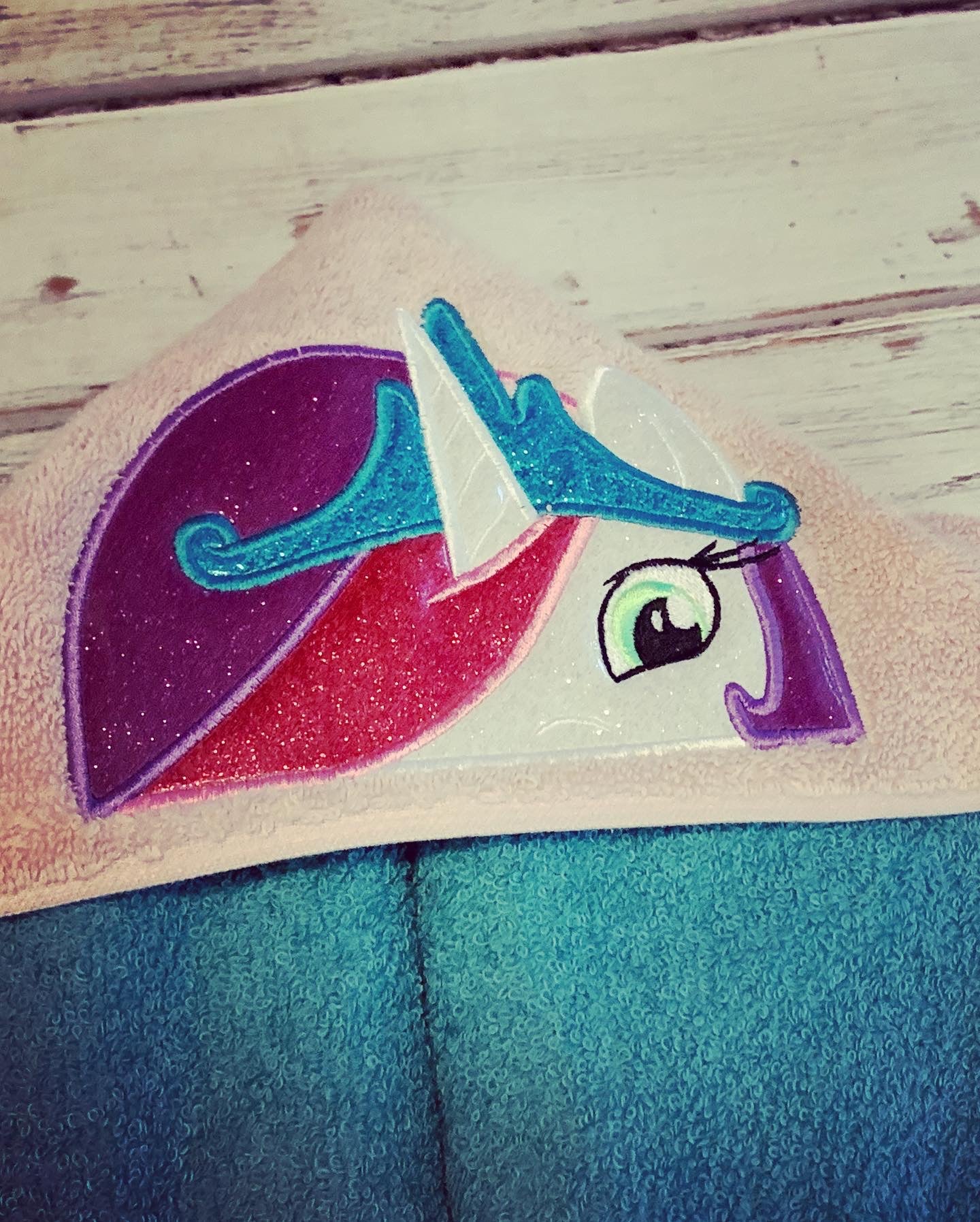 This listing is for a custom My Little Pony Princess Celestia hooded towel. Price includes child's name on the back of the towel.