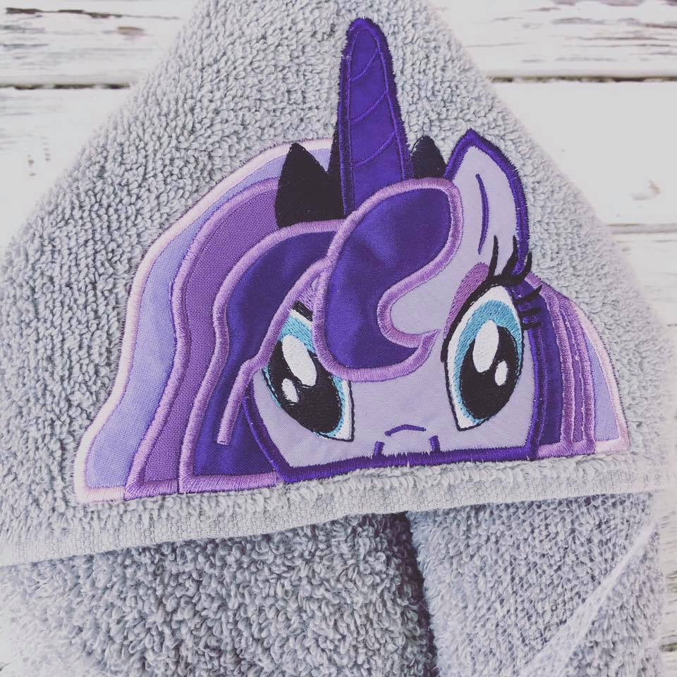 This listing is for a custom My Little Pony Luna hooded towel. Price includes child's name on the back of the towel.