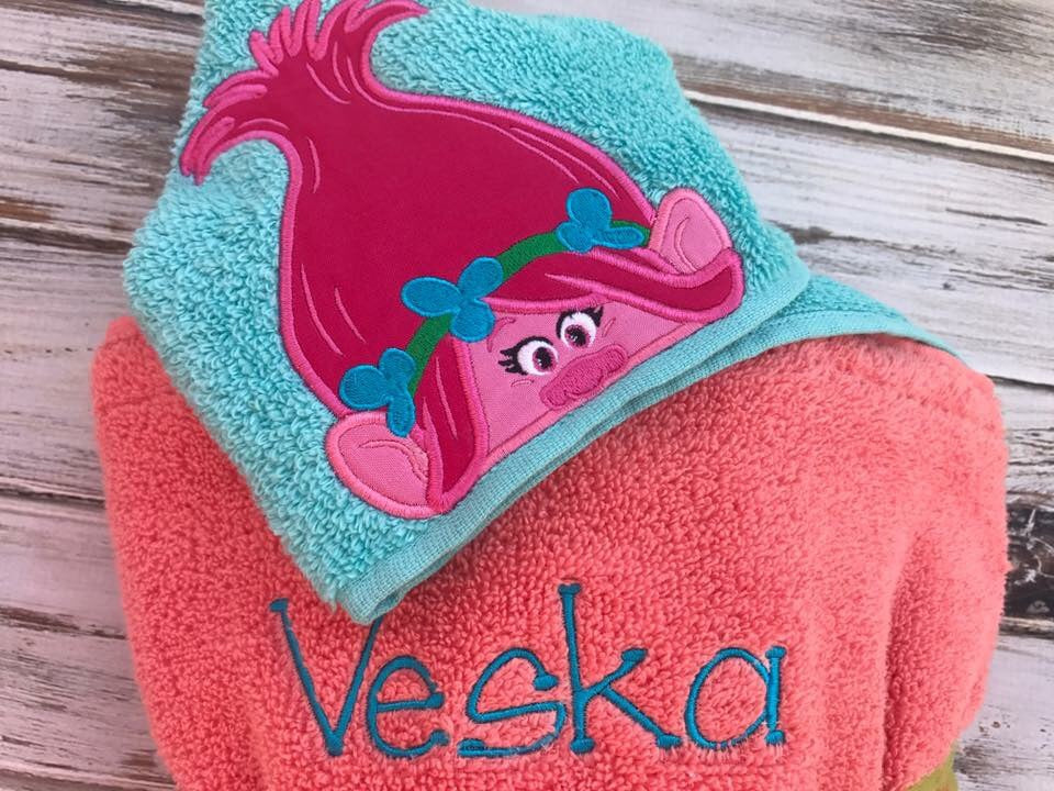 This listing is for a custom Poppy Troll hooded towel. Price includes child's name on the back of the towel.