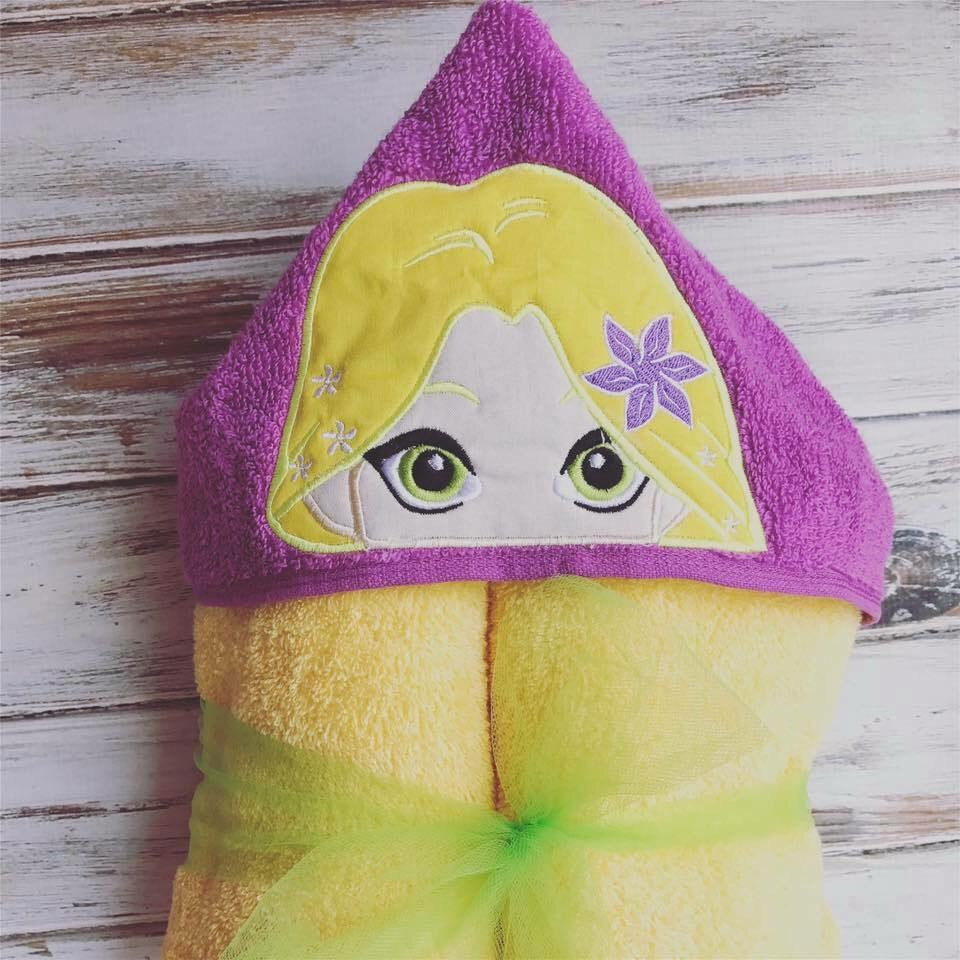 This listing is for a custom Rapunzle hooded towel. Price includes child's name on the back of the towel.