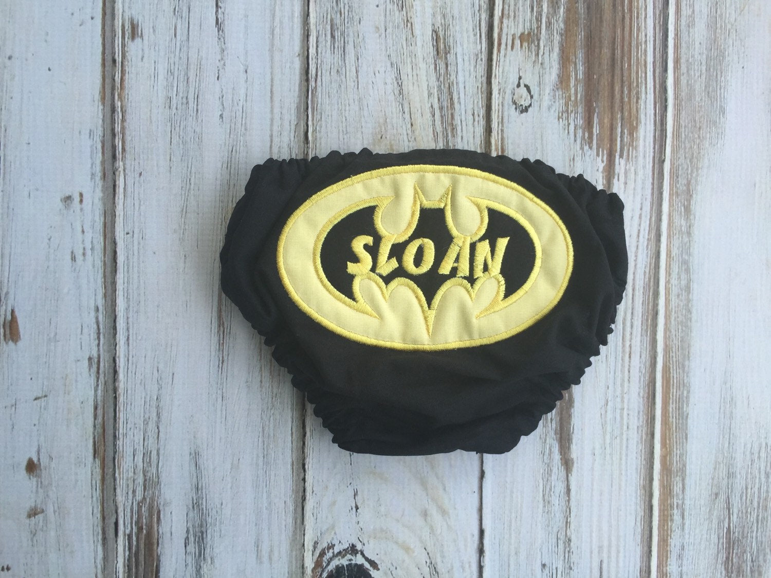 This listing is for a Custom Batman applique Diaper Cover! These adorable bloomers are perfect for a boy or girl! And perfect as a newborn photo prop! **Depending on the length of the child's name will depend on if I can fit inside the batman symbol.
