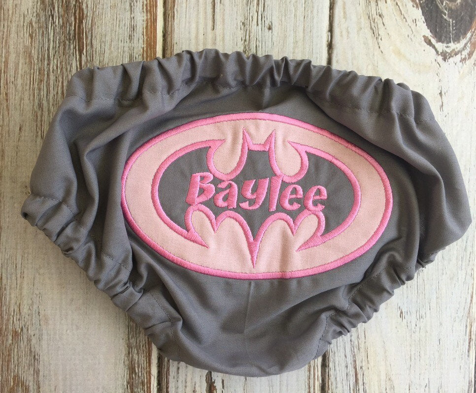 This listing is for a Custom Batman applique Diaper Cover! These adorable bloomers are perfect for a boy or girl! And perfect as a newborn photo prop! **Depending on the length of the child's name will depend on if I can fit inside the batman symbol.