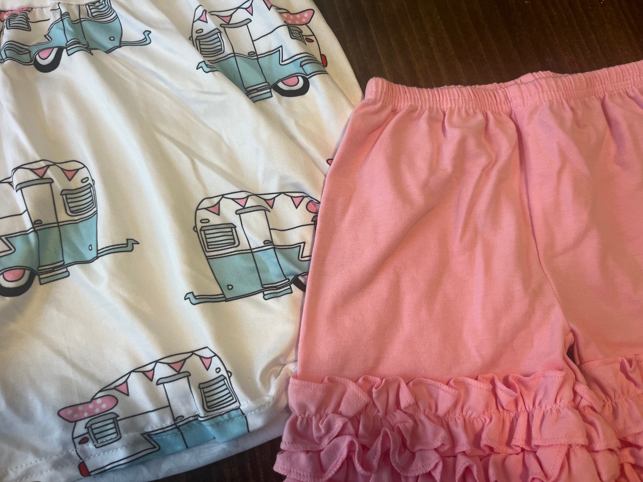 This listing if for an adorable Camper print 2 piece shorts outfit. Pink shorts are perfect to mix and match with other outfits!