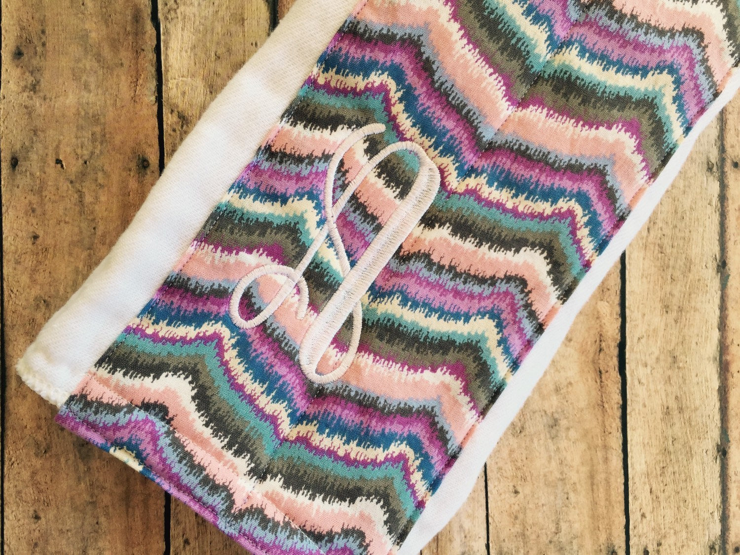 This is a custom baby birth cloth. You choose the fabric colors/print. I can put either 1 monogram or a name.