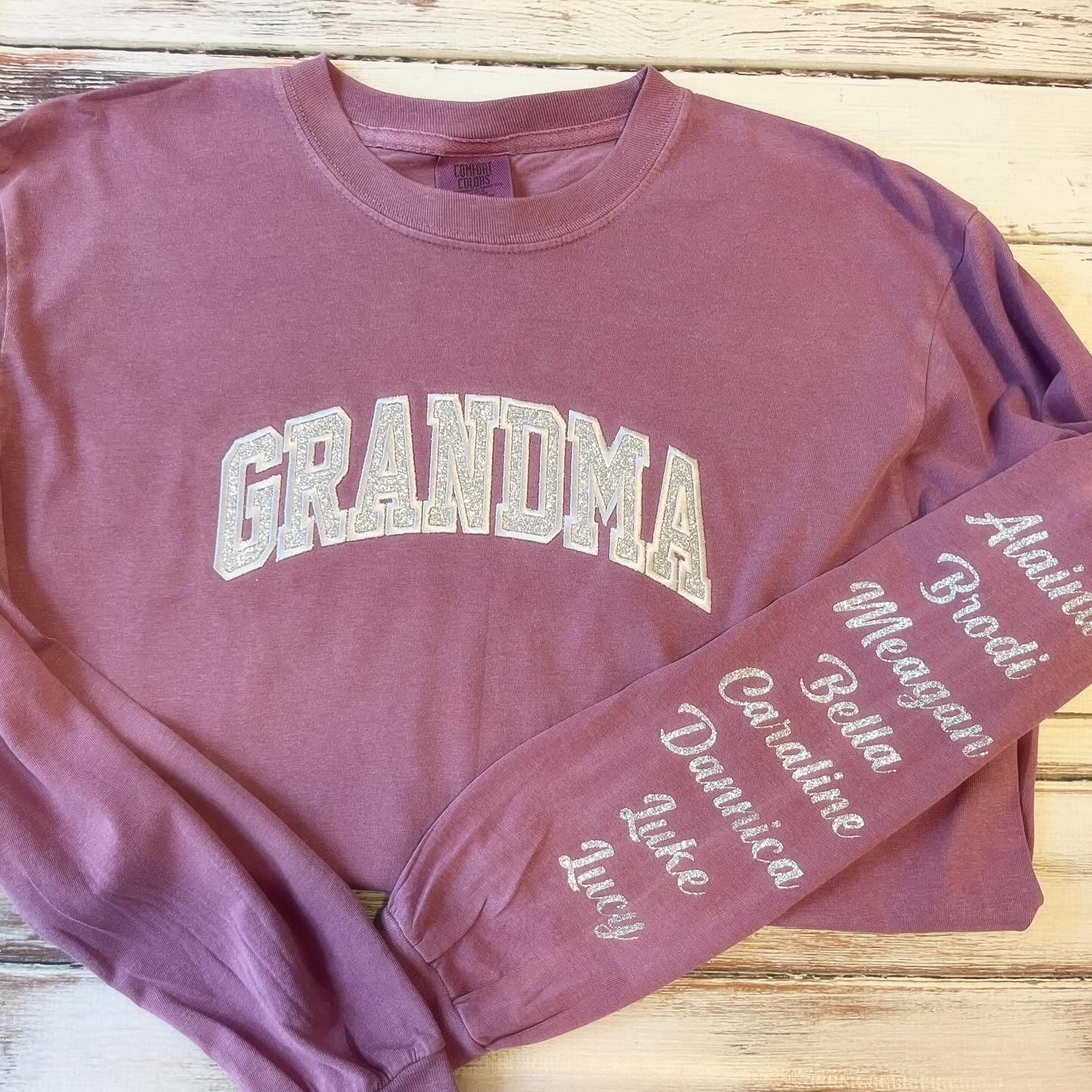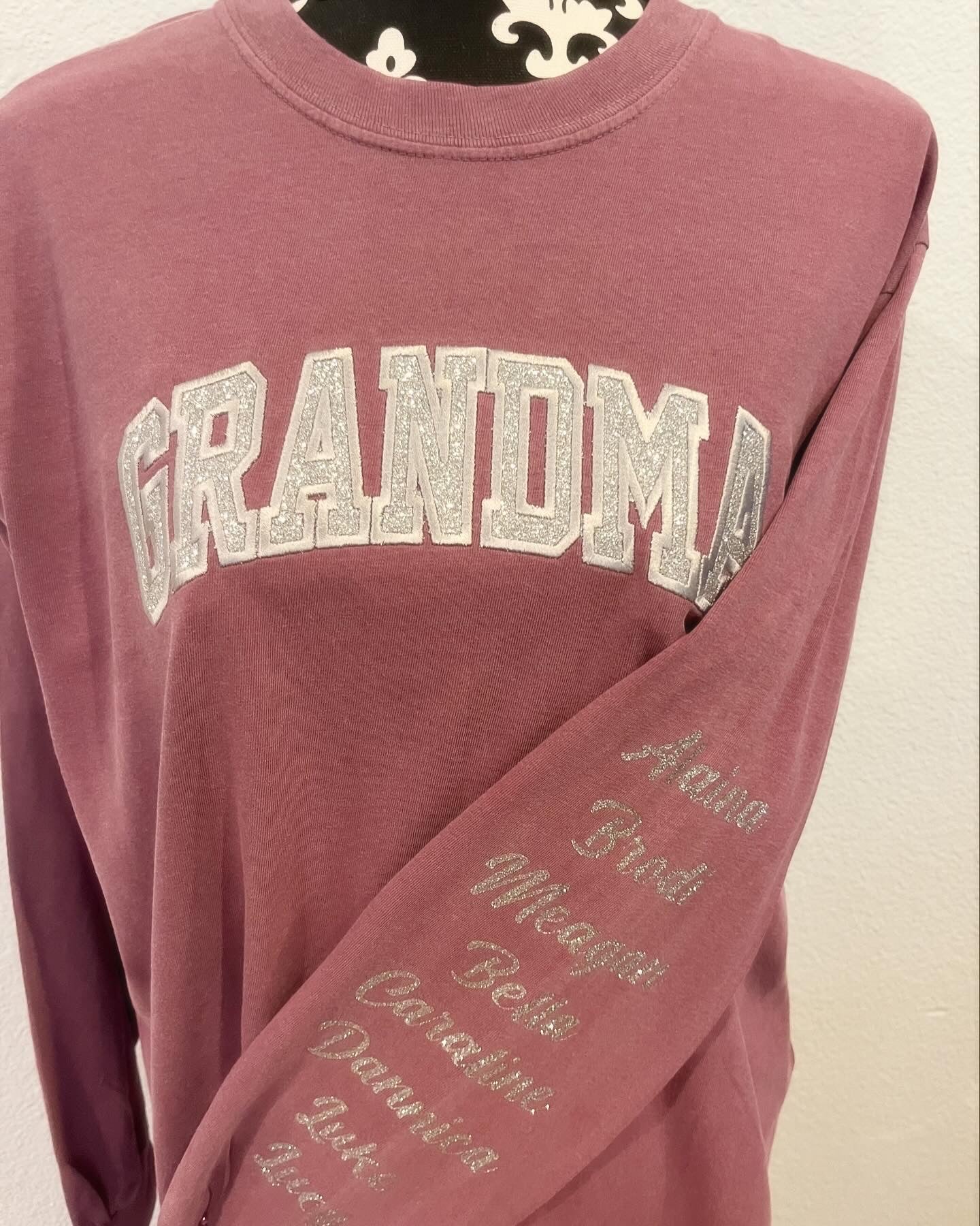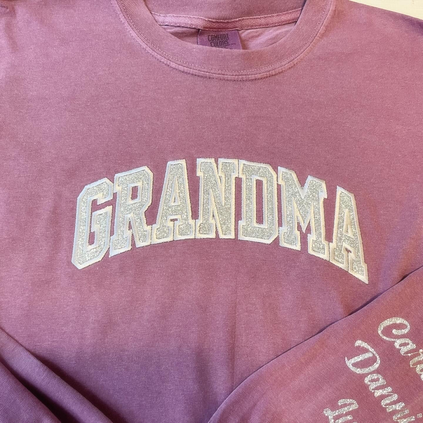 This listing is for an Embroidered custom Grandma Shirt with a mix of vinyl! Love the contrast! These are so popular!