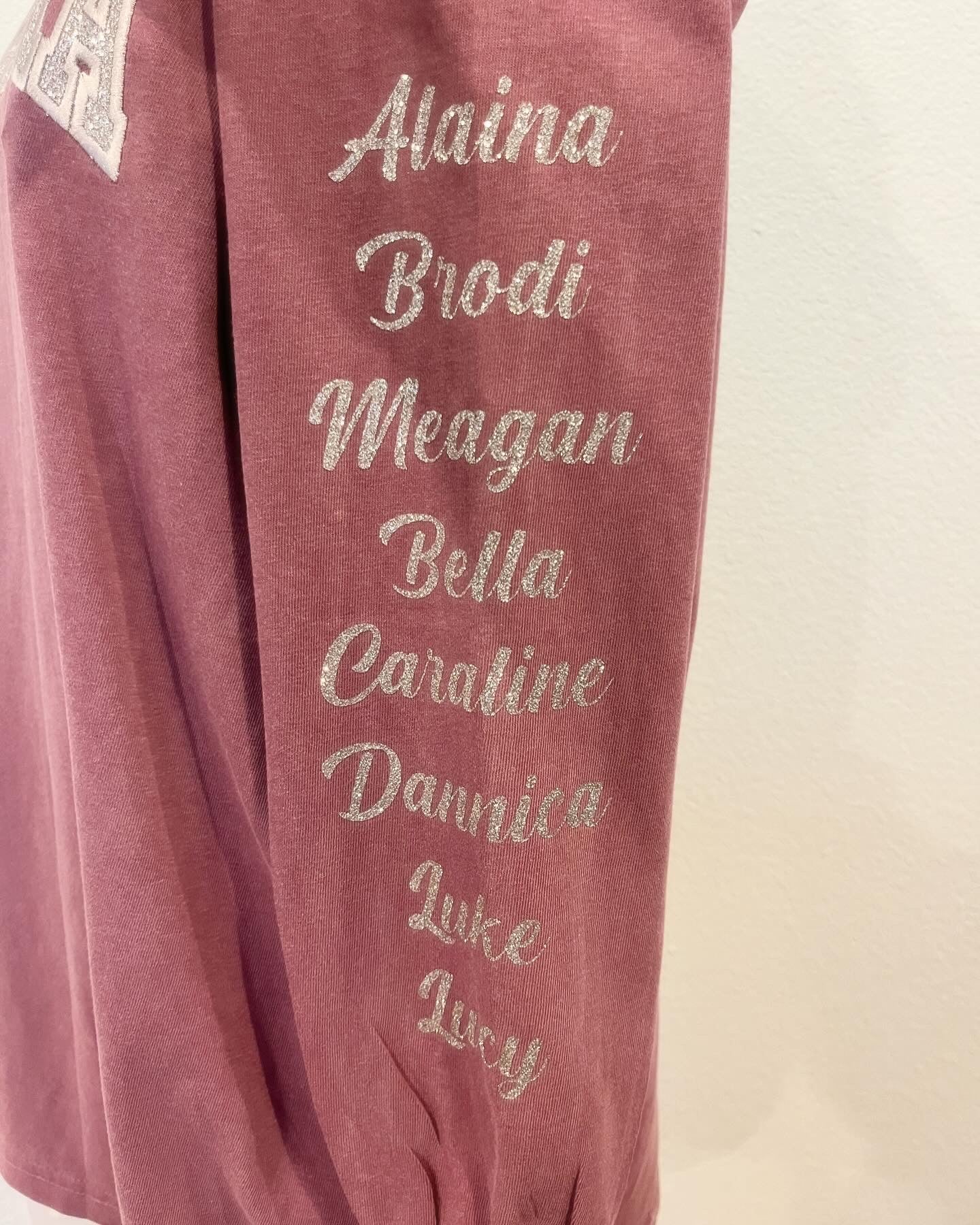 On the sleeve I can add your grandkids names to give it that extra personal touch! I normally add to the right sleeve unless you request the left sleeve.