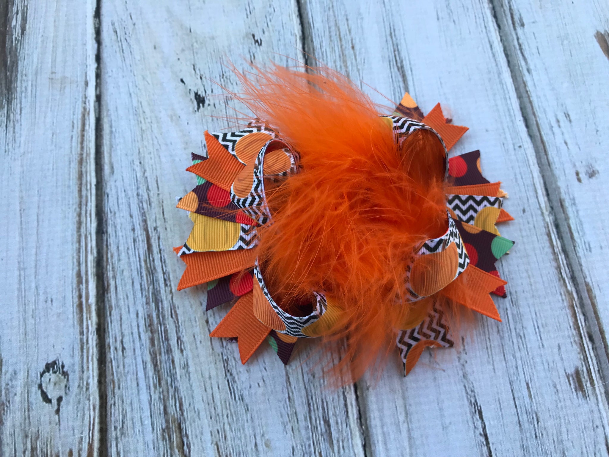 This listing is for a smalll over the top Fall Boutique Bow.