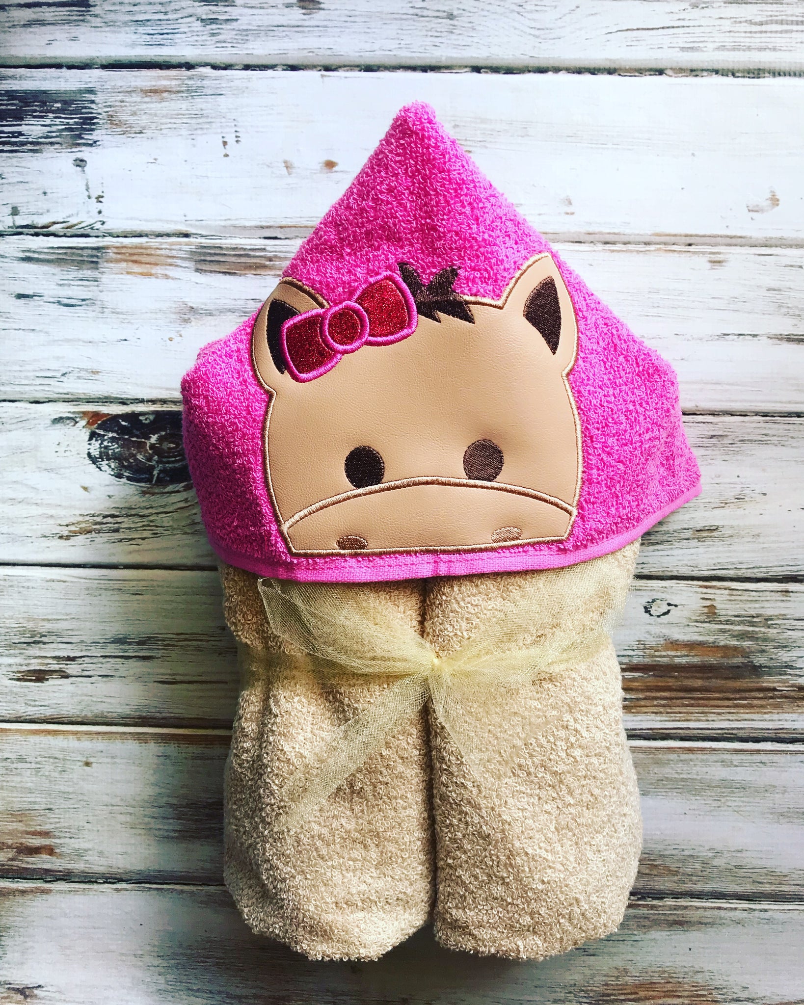 This listing is for a custom Horse hooded towel. Price includes child's name on the back of the towel.