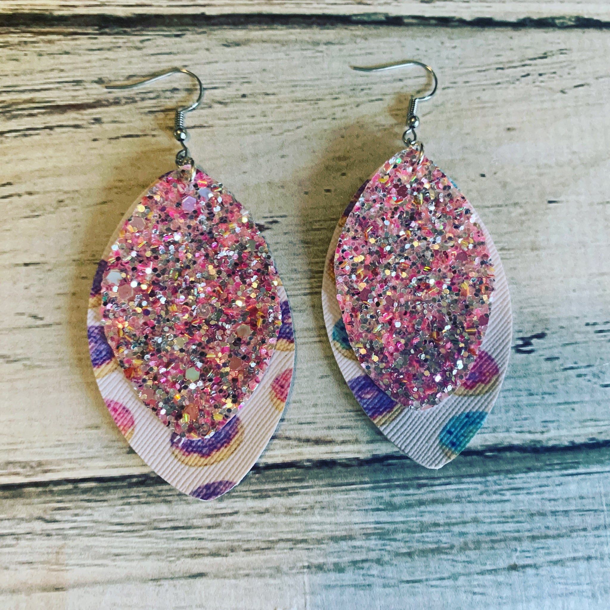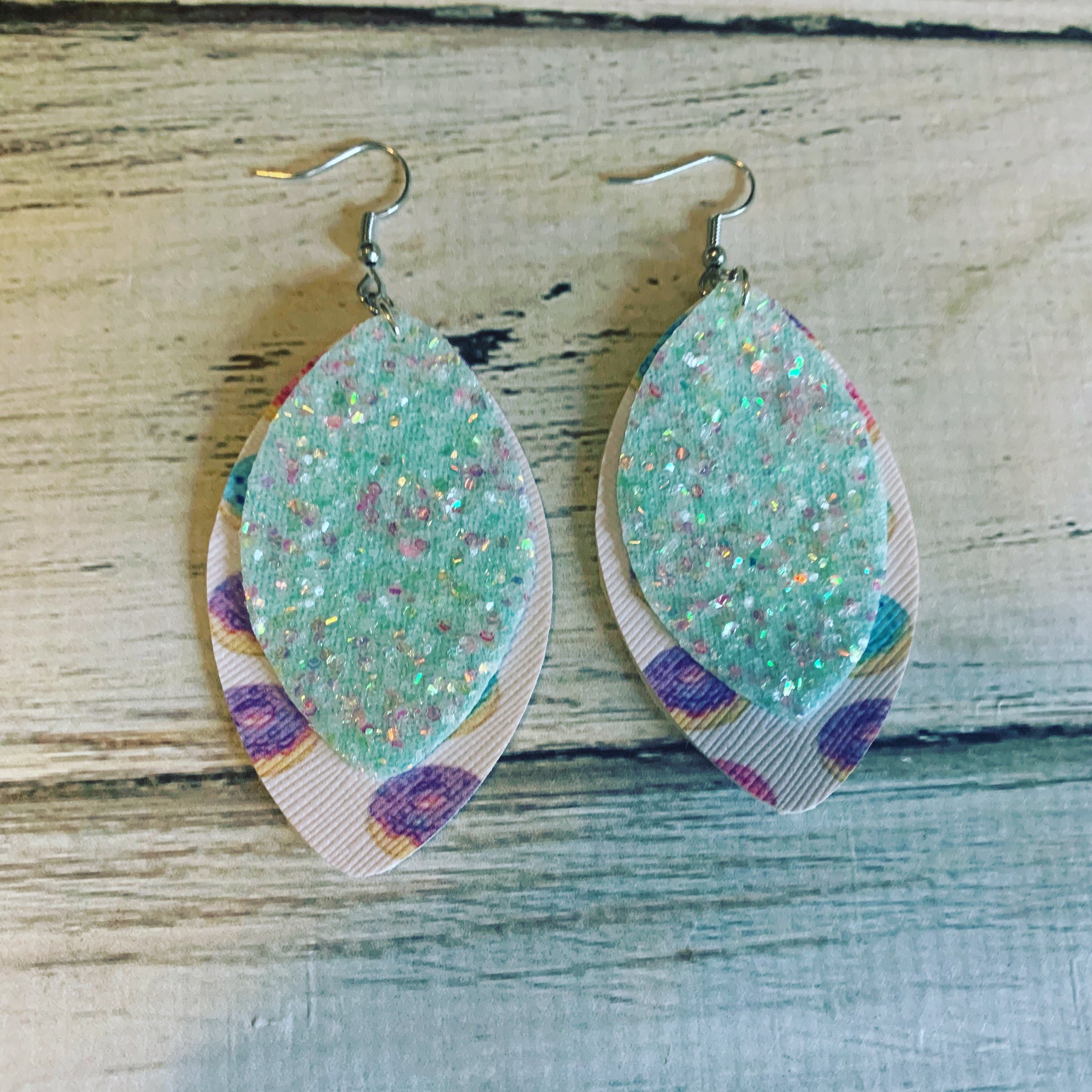 My earrings are made of a thick canvas, marine vinyl, faux leather and vinyl. Hooks are simple ear hooks that you can squeeze to tighten to your ear so they do not fall off.