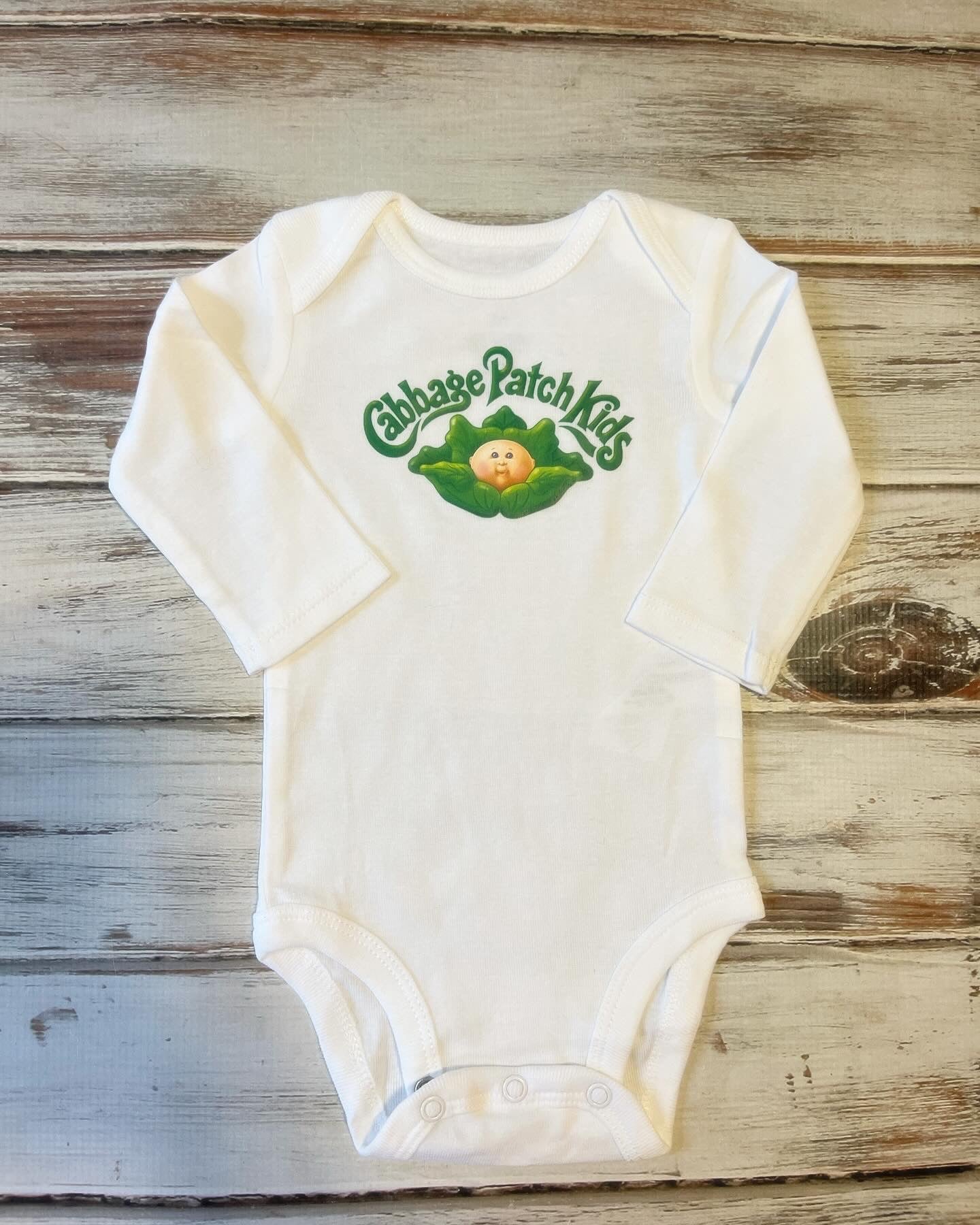 This listing is for a Vinly  Cabbage Patch Design Onesie. Perfect for Halloween or any day!